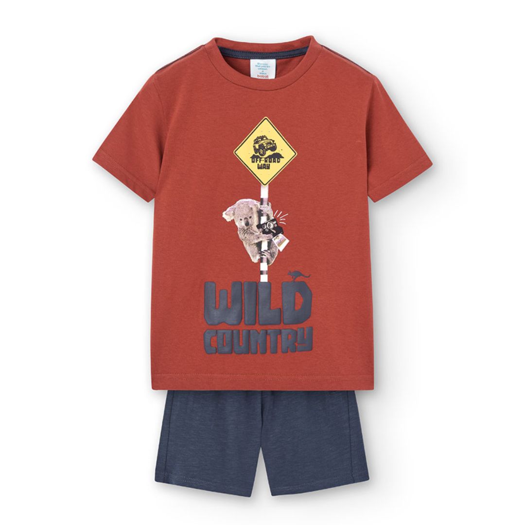 Playera terracota con diseño ‘Wild Spirit’ y short azul marino