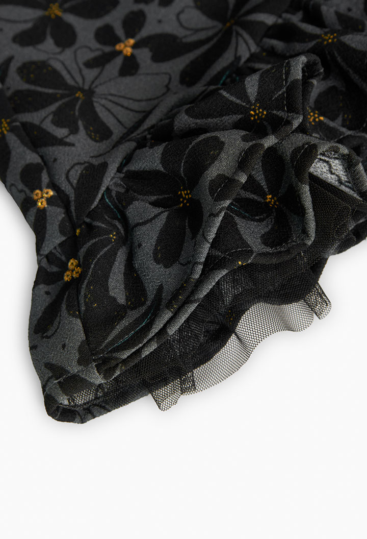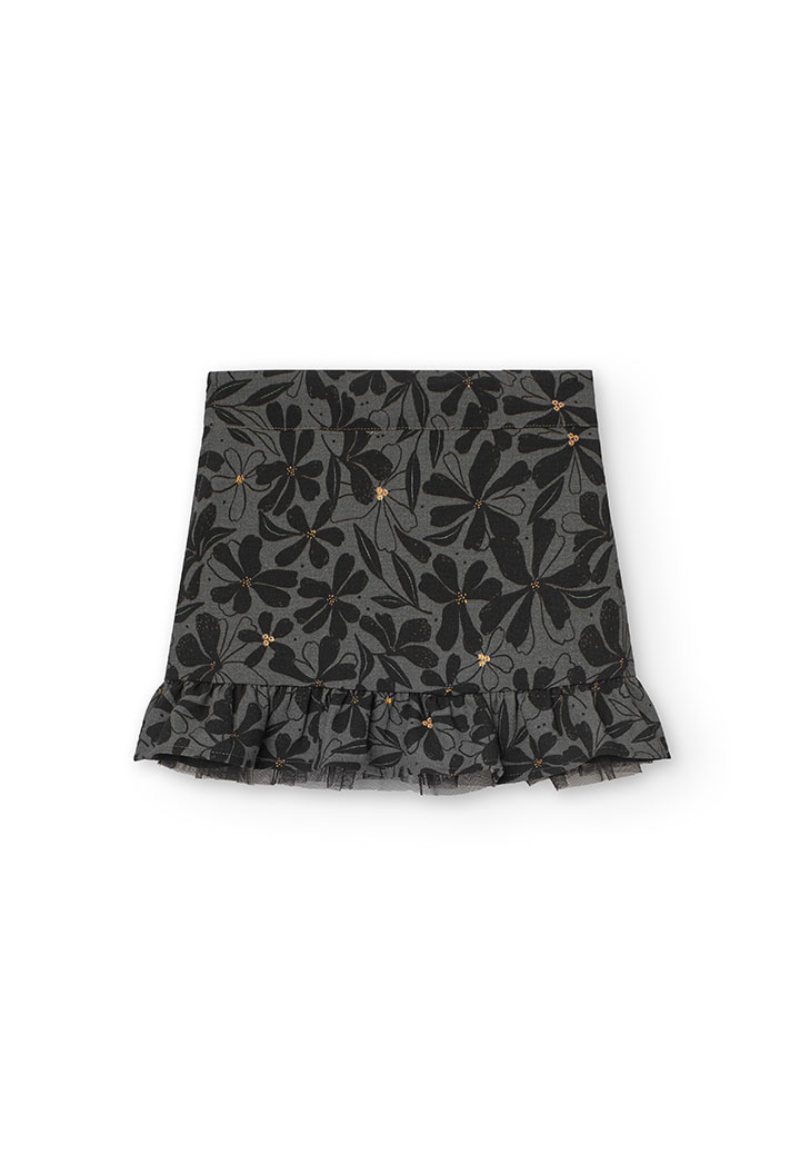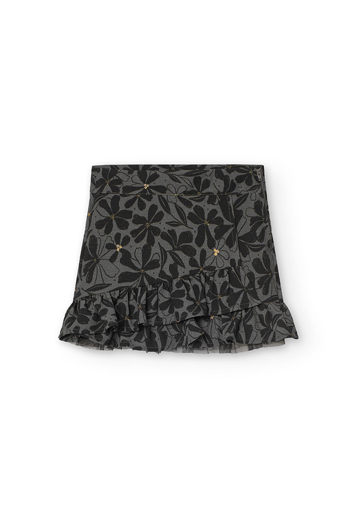 Falda estampada de niña -BCI – estampado flores. Composición: Ext:100%poliéster Forro:51%poliéster 49%algodón