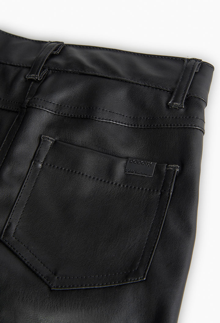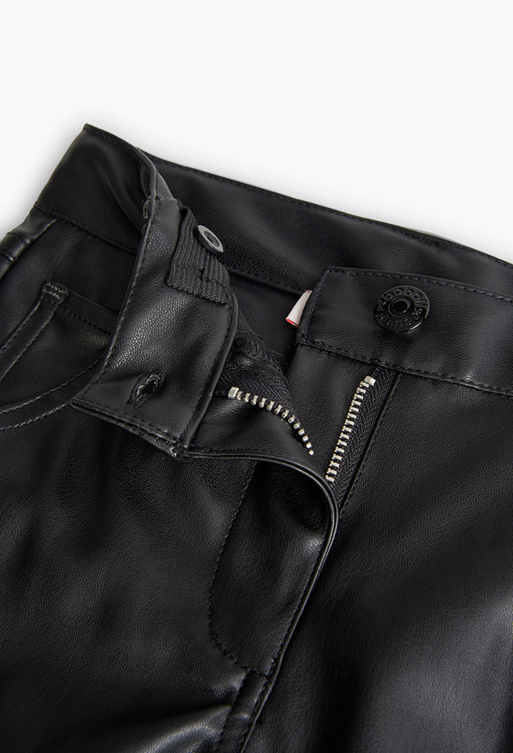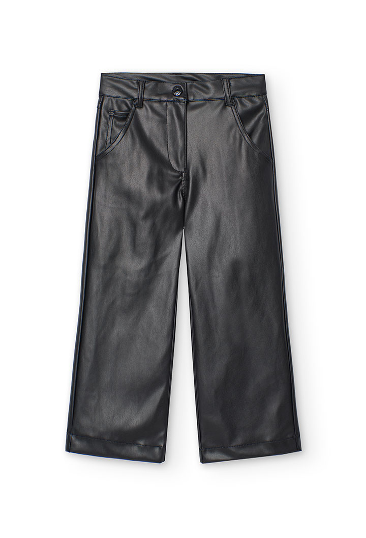 Pantalón polipiel de niña – NEGRO. Composición: 50%poliéster 50%poliuretano