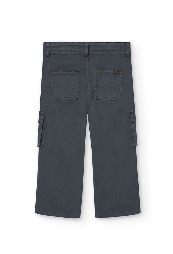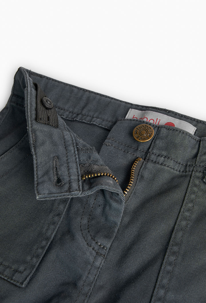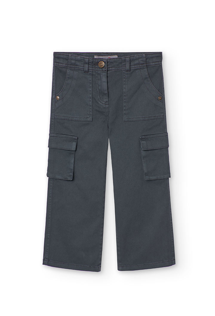 Pantalón sarga elástica de niña -BCI – antracita. Composición: 98%algodón 2%elastano